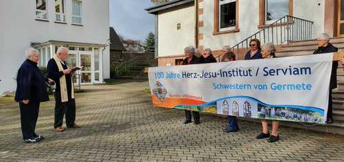 Den 100. Jahrestag der Gründung unserer Gemeinschaft begingen wir in Haus Germete heute mit der Feier der Eucharistie. Im Anschluss an die Festmesse weihte Pastor Daniel unser Jubiläumsbanner. Damit ist das Jubiläumsjahr eröffnet.